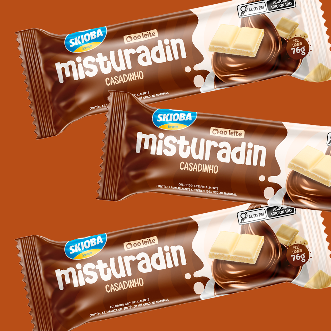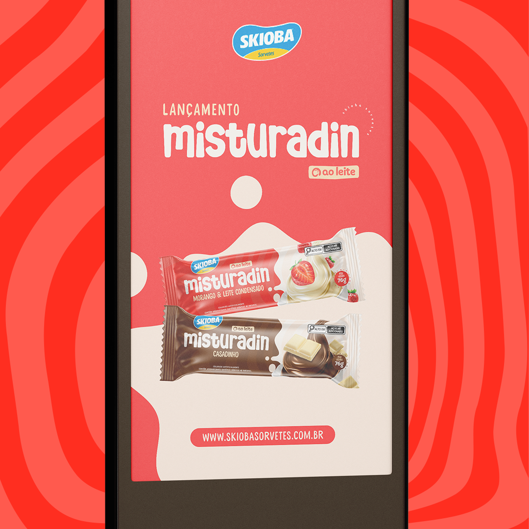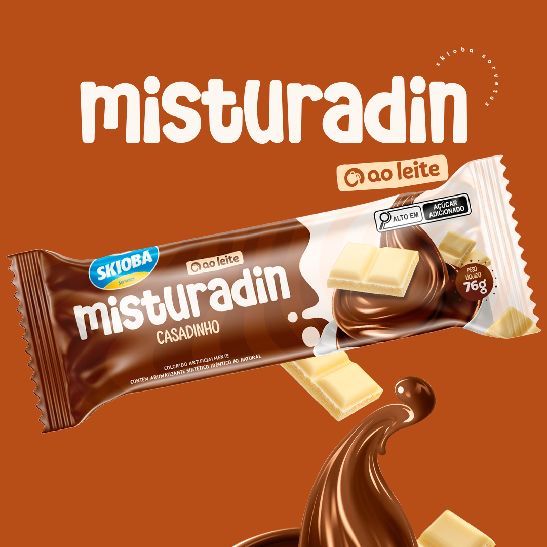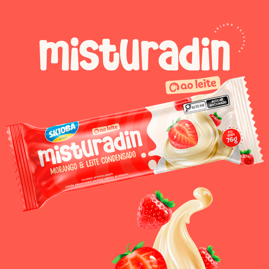 A Identidade Visual da linha Misturadin, da Skioba Sorvetes, foi cuidadosamente desenvolvida para refletir toda a cremosidade, sabor e diversão que os produtos oferecem.