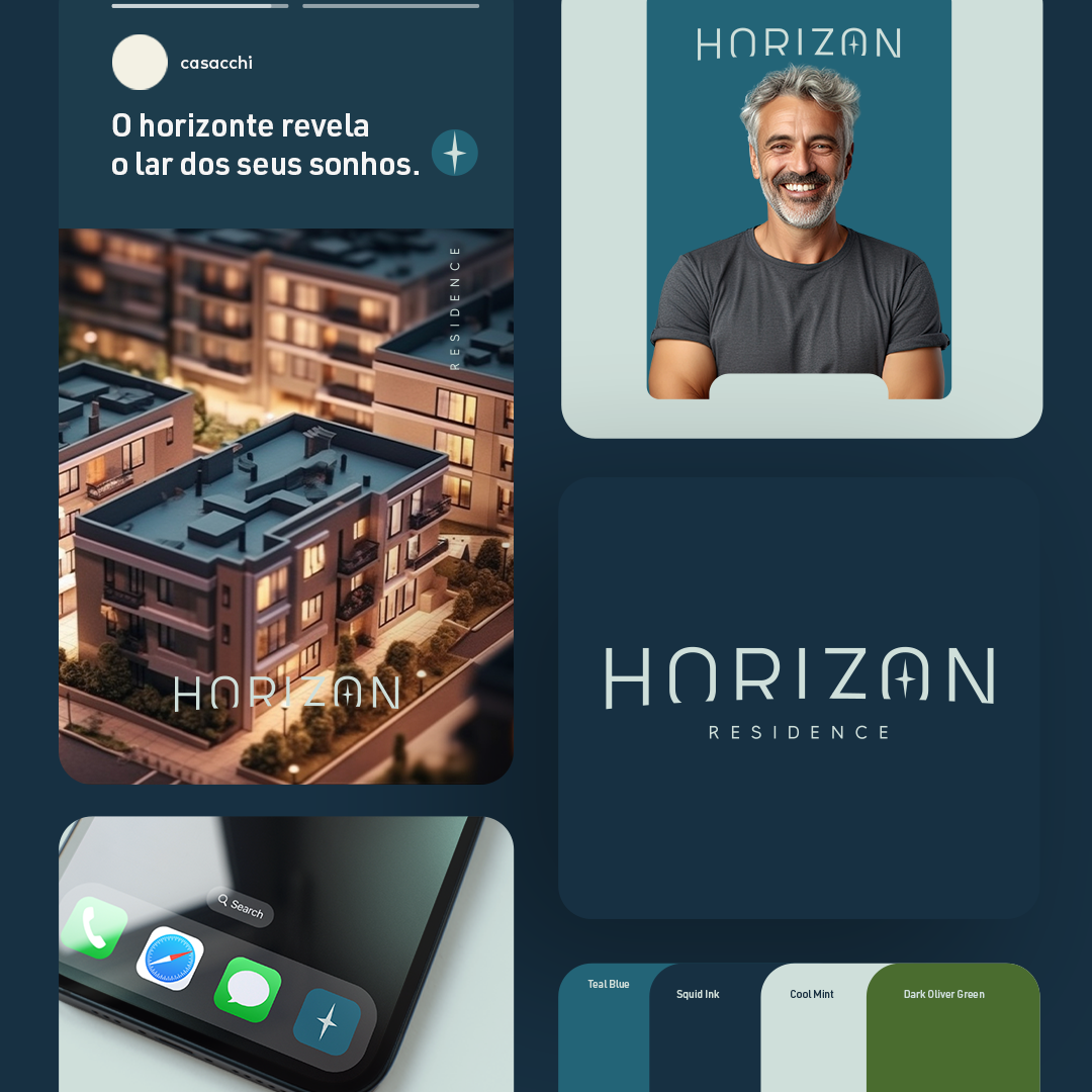 Na Centenaro Propaganda, tivemos a missão de criar uma Identidade Visual que refletisse toda a essência desse empreendimento. Desenvolvemos uma marca que transmite exclusividade, solidez e modernidade, elementos que estão diretamente conectados ao conceito do Horizon Residence.